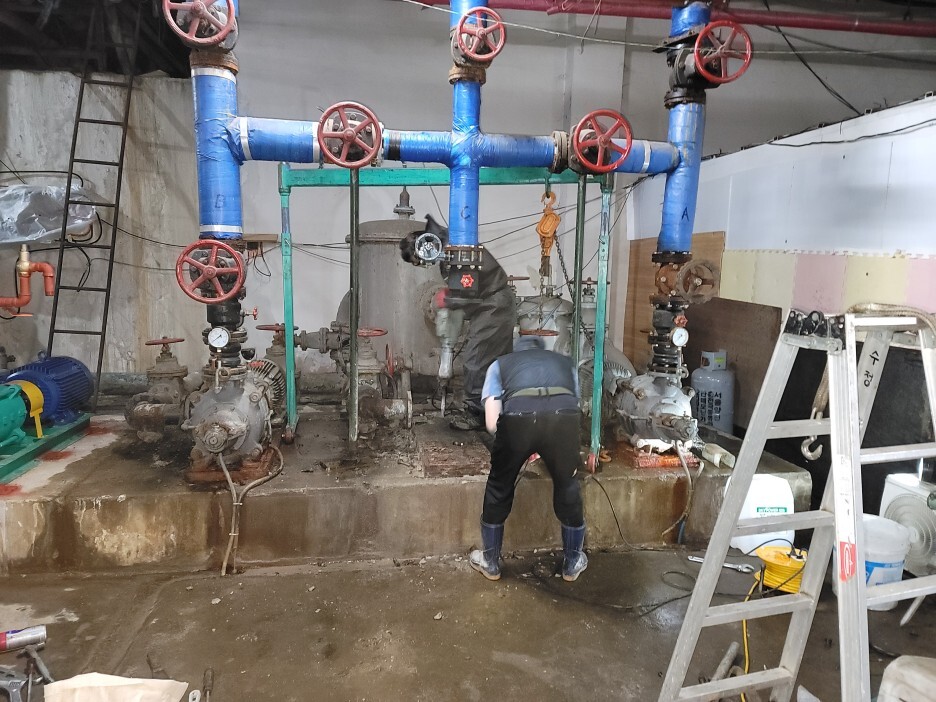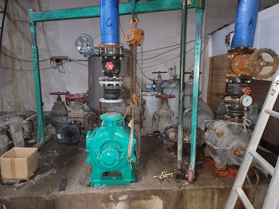 배관부속 및 신펌프 설치 모습
